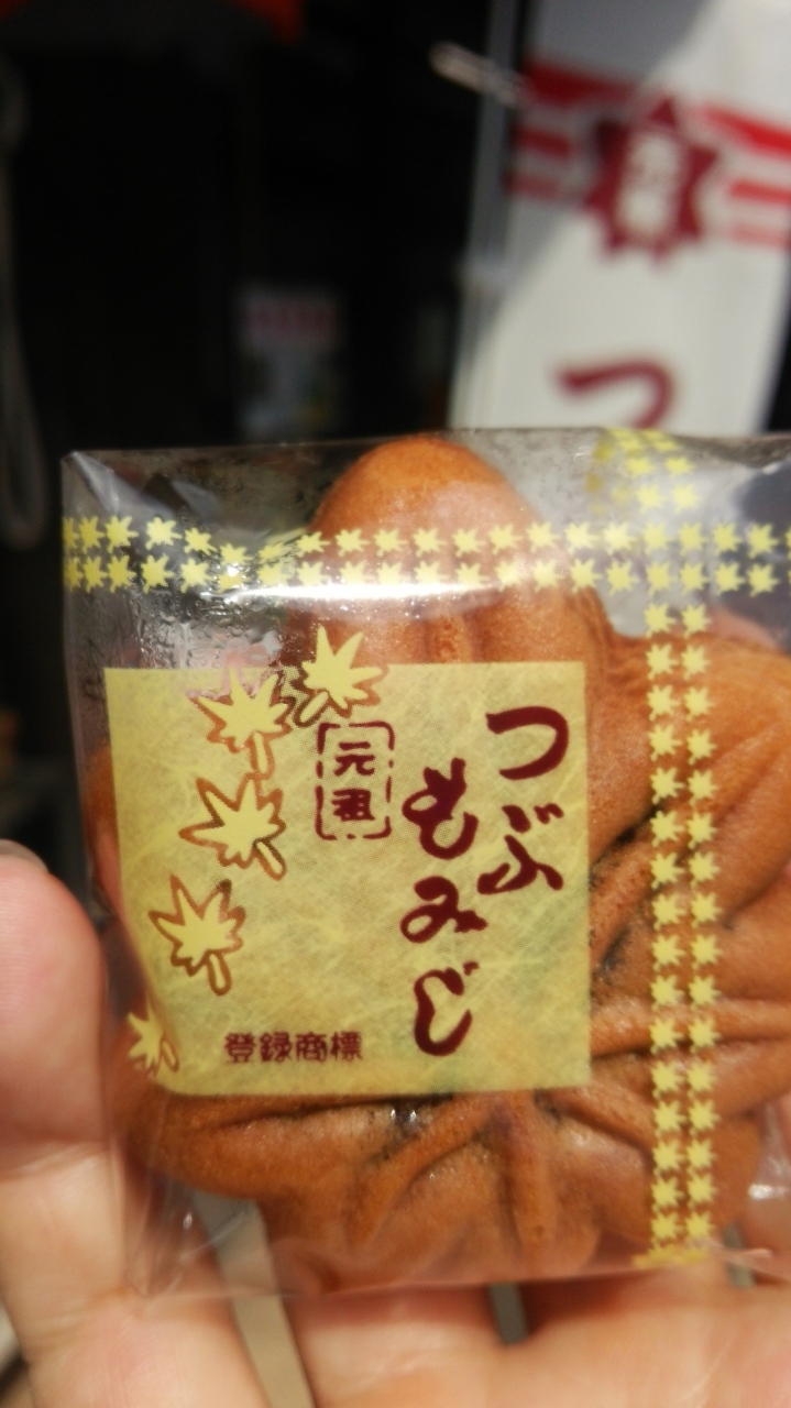 店は普通の饅頭屋という感じですが、もみじ饅頭を頼むと出来たてをそのまま包んでいただけました。