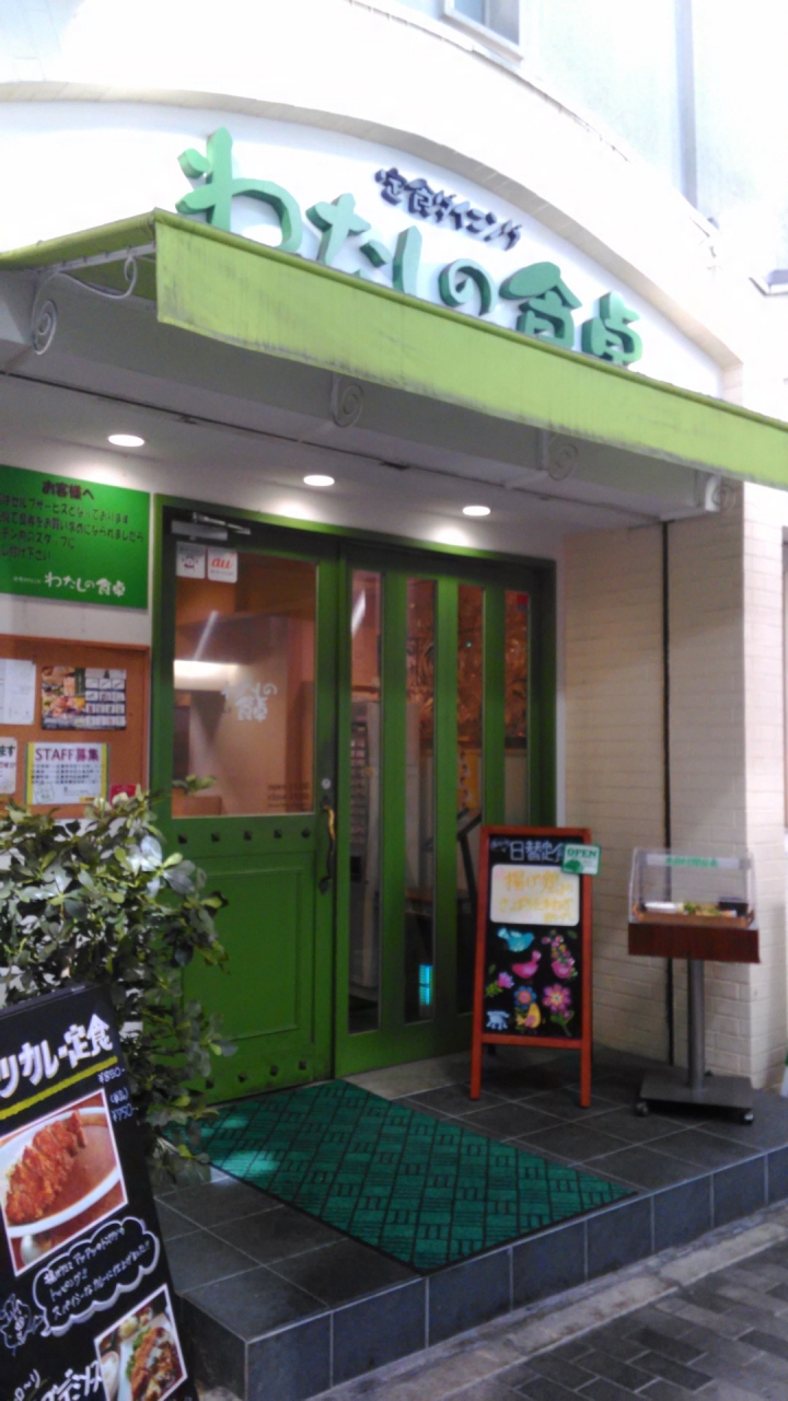 広島市の紙屋町のサンモールの東側の入り口のある細い路地にわたしの食卓があります。店に入って食券を券売機で買い、店の人に渡すと席を案内されます。定食の種類が豊富でお店の雰囲気も好きなので広島で食事をする際にはよく利用しています。今回は豚のカツレツ定食をいただきました。