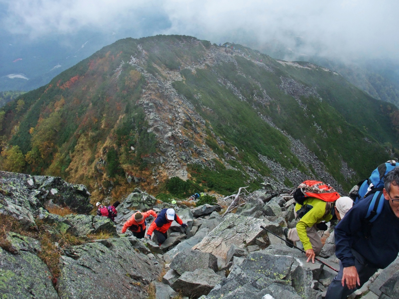 この道は丸山まではそんなに急登もないのだが、独標への最後の登りはかなり急な岩場で、過去に事故も多い場所だ。