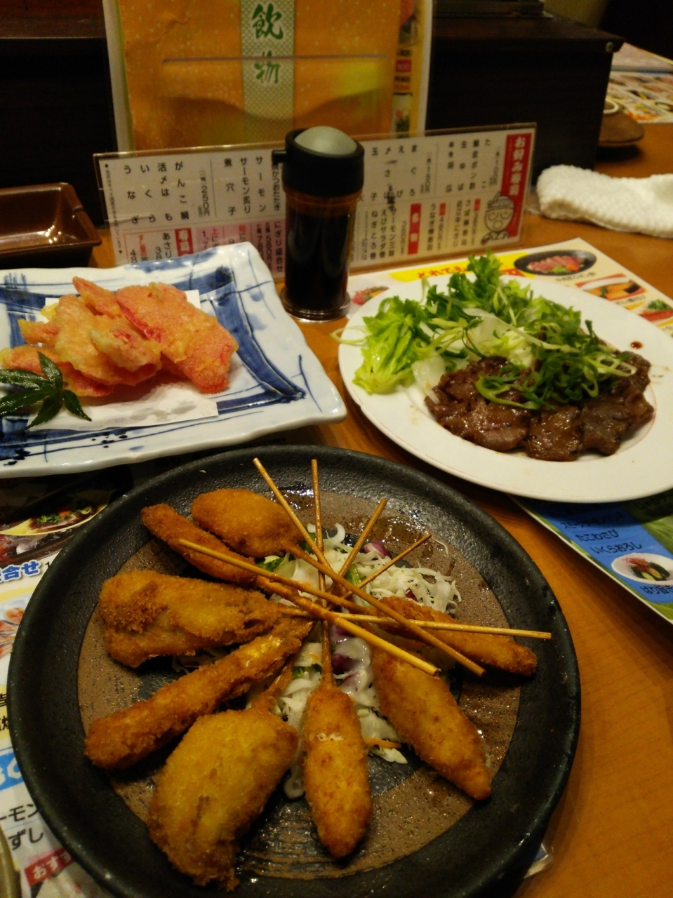 阪急梅田駅から徒歩5分程度にあります。大阪に来るとあちらこちらで見かけるお店ですが、初めて行きました。串カツなど大阪名物やはも、近江牛なども食べることができます。店内はかなり混んでいましたが、料理も美味しく、値段もリーズナブルでした。