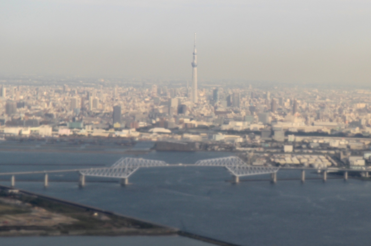 羽田空港から岡山空港に行く際、機内から東京ゲートブリッジと東京スカイツリーが見えましたので写真に収めました。
