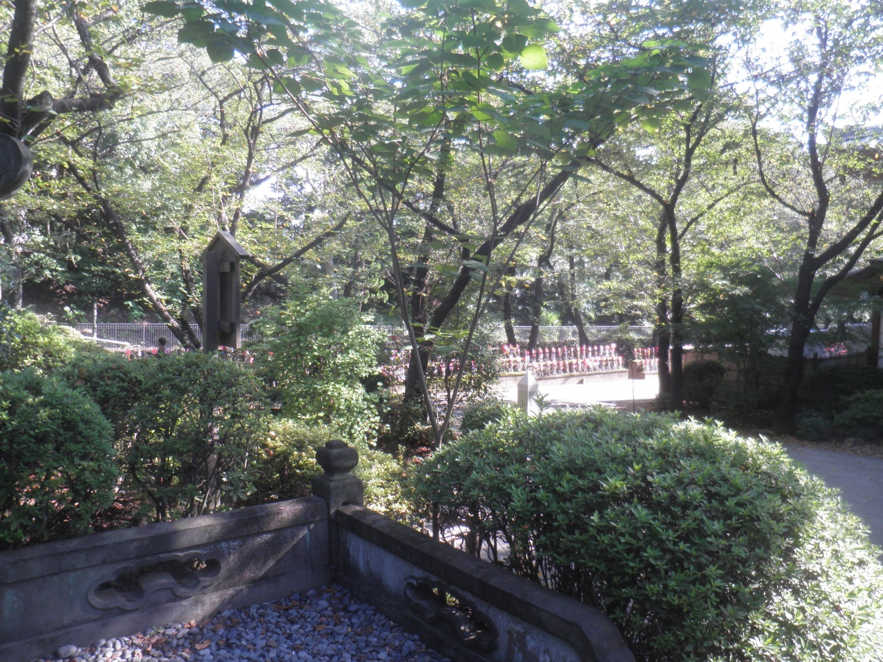 千躰子育地蔵尊は、増上寺の安国殿から徳川将軍家墓所の方に行ったところにならんでいます。ずらりと並んだ小さめのお地蔵さまが赤い頭巾をかぶって、風車を持っています。 風のある日だったんで、風車が回る音がきこえてきました。 高級ホテルが周辺にあるせいか、外人観光客が記念撮影をしていました。