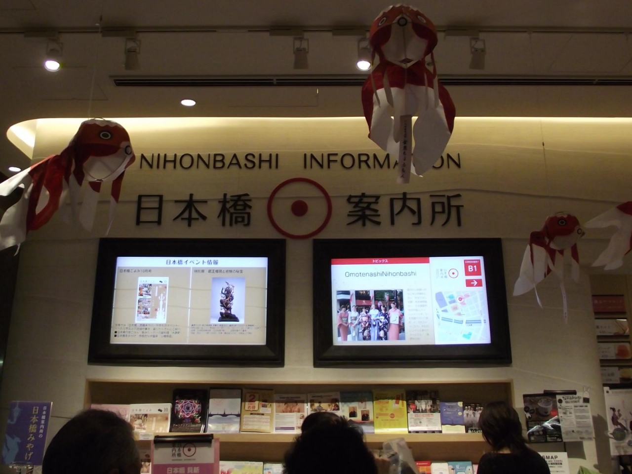 ここは、日本橋地域の情報発信強化のため、「街の案内所」 として、今流行りのコンシェルジュや老舗の主商品、観光案内などを揃えているところです。