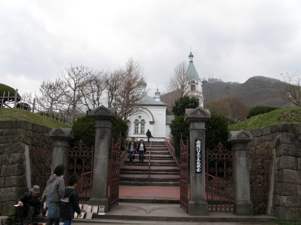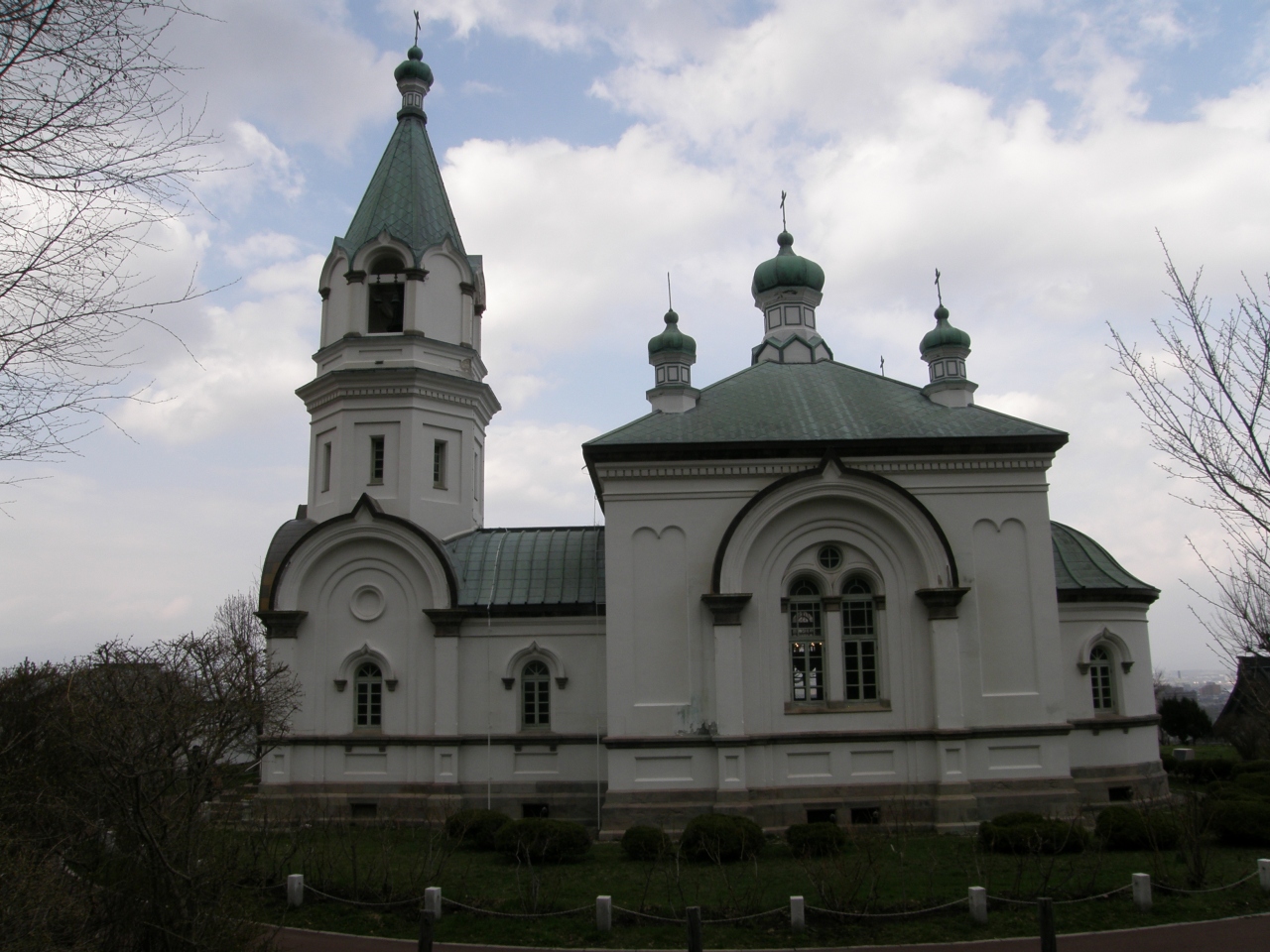 函館ロープウェの乗場から歩いて5分ほどのチャチャ登りの始まりにある緑青色屋根の建物です。ロシア風ビザンチン様式だそうです。