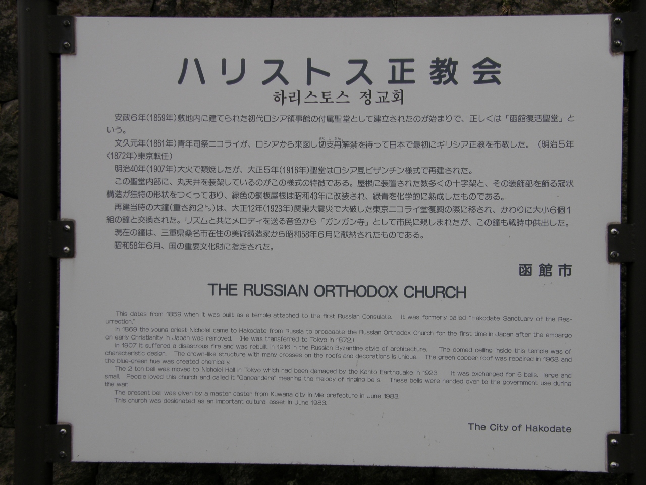 正教会って、個人的にあまり聞きなれないなと思っていたら、別名「ギリシャ正教」なんですね。これなら教科書で習いました。なお、教会名にもなっているハリストスは、キリストのギリシャ語読みだそうです。