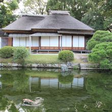 岡山後楽園の中で戦災を免れた数少ない建物のひとつです。建物から沢の池越しに起伏に富んだ景観が眺められ、藩主池田綱政が最も好んで利用した建物だと言われています。建物自体も前面にある池と調和し雅な感じがします。