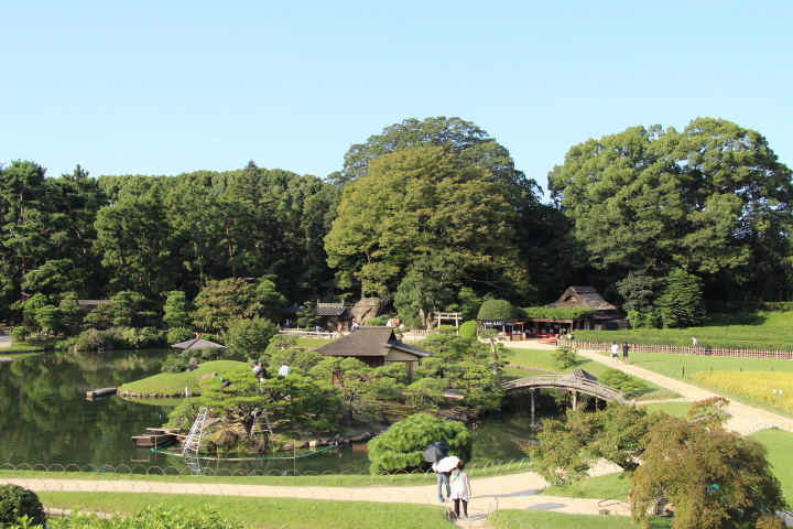 岡山後楽園は、水戸の偕楽園、金沢の兼六園とともに日本三名園のひとつに数えられています。広い緑の芝生や大小様々な池、築山、茶室が園路や水路で結ばれ歩きながら移りゆく景色を楽しめる回遊式庭園です。梅林、桜林、菖蒲園など季節毎に楽しめるようにもなっています。