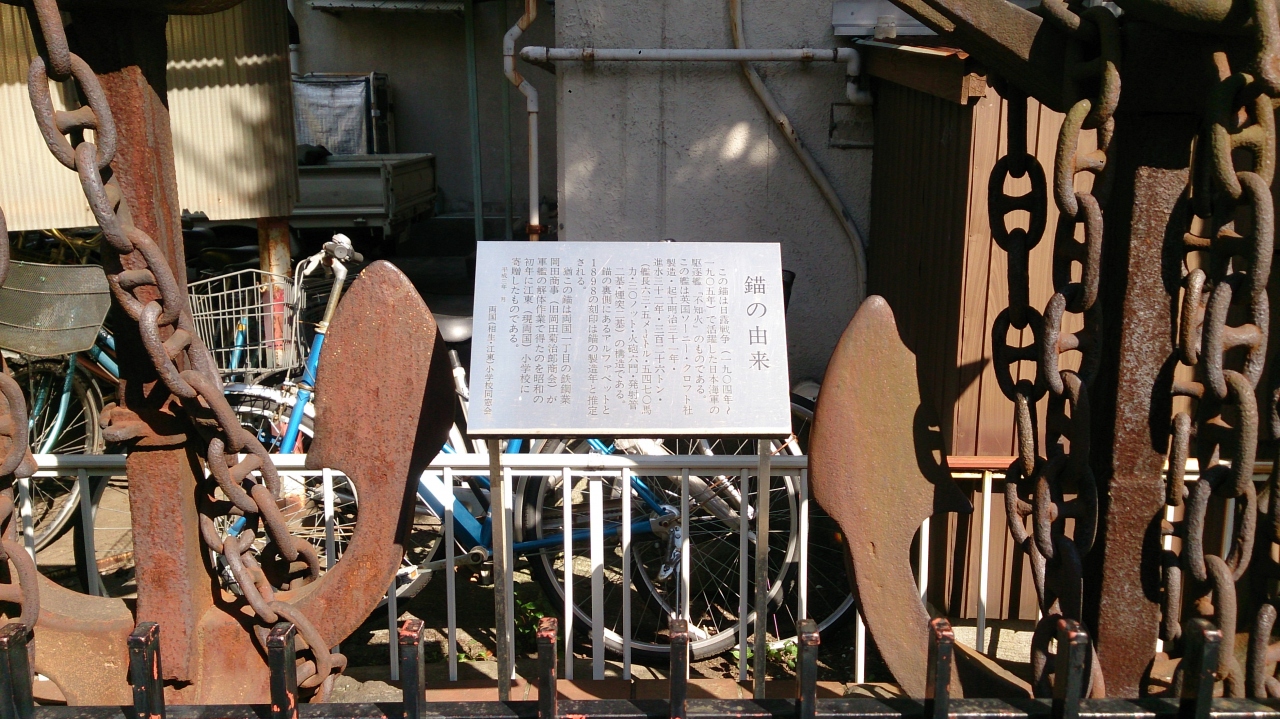両国界隈を散策して、芥川龍之介文学碑を訪問した際に見つけました。文学碑と同じで両国小学校の敷地内に設置してあり、文学碑のすぐ近くにあって、さしずめオブジェスポットになっています。この錨は日露戦争時代の戦艦の錨を保存しての展示ですが、かなりさびておりお世辞にも保存状態は良いは言えないです。それでも巨大船の錨を間近で見る機会はなかったので、非常に興味深く見ることが出来ました。もちろん日露戦争時代のかなり古い時代の戦艦の錨らしく複雑形状でつくることが出来なかったのか単純な形状なのが印象的です。