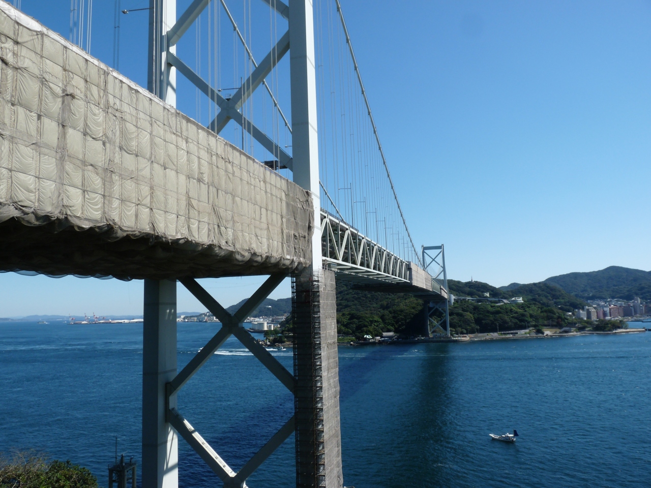 本州と九州を行き来するにはこの関門橋を通ることとなります。走行している際はドライバーでなければ眺めることはできませんが,壇ノ浦サービスエリアからは,展望台などの施設からゆっくり眺めることができます。橋梁本体も間近で見られるので,ぜひとも,ゆったりと眺めてほしい橋です。