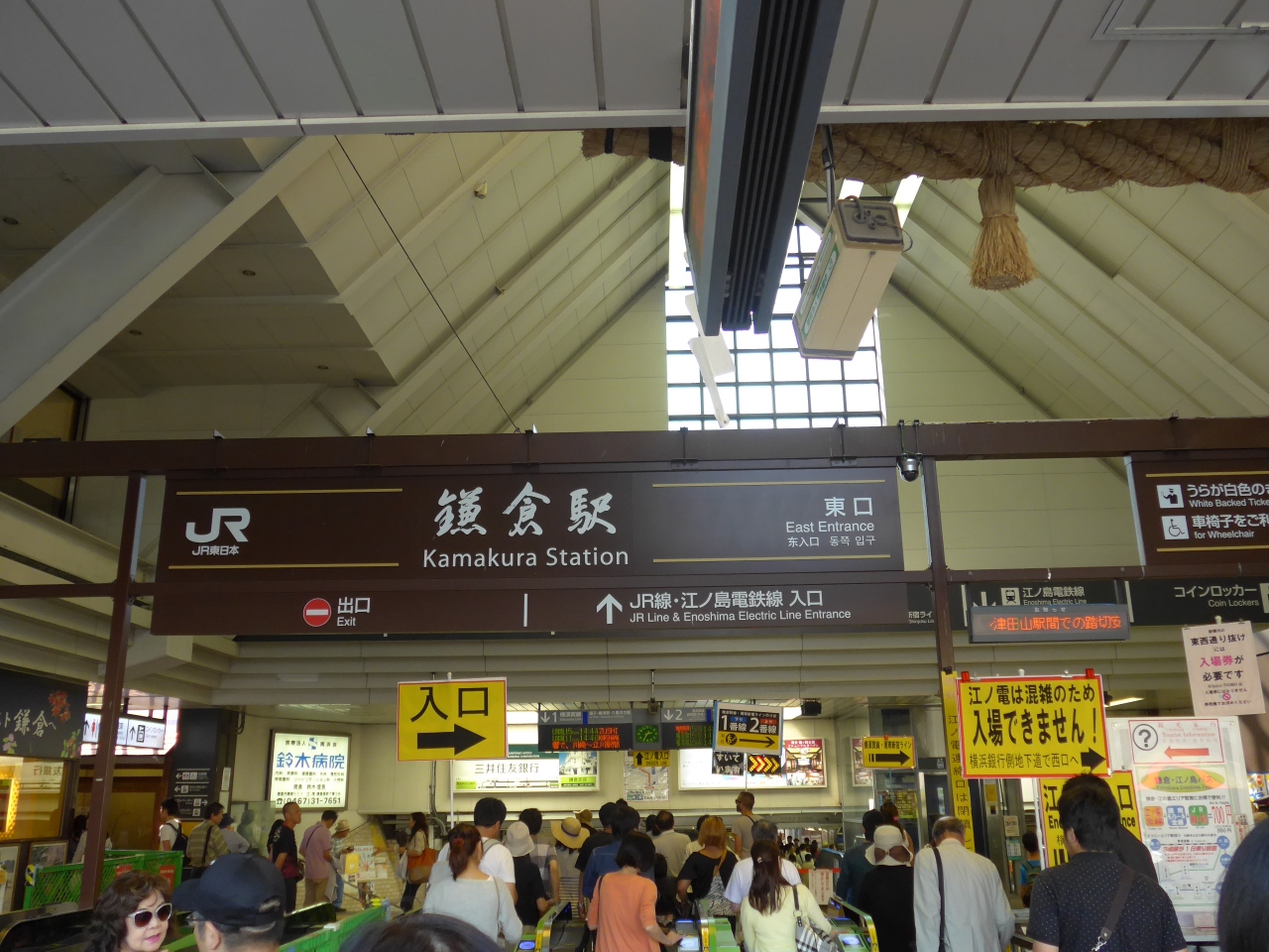 満員電車の江ノ電で鎌倉駅に到着。鎌倉も電車下車から駅への入場規制とJRへの乗り換え規制がありいつもとは違う鎌倉駅でした。