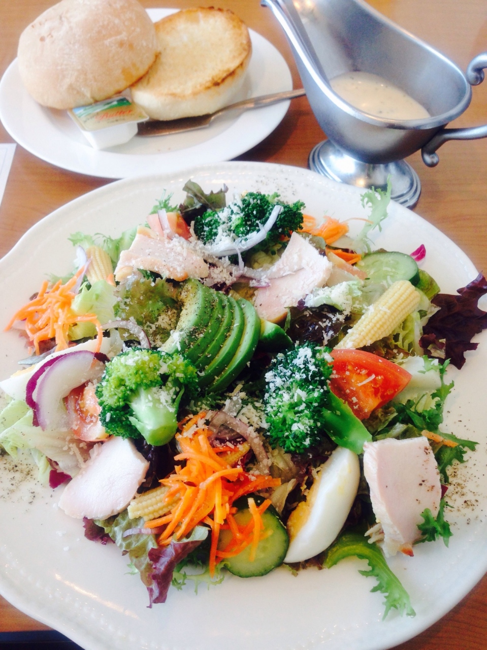 アグー豚を使った料理などもありますが、軽く済ませたいので、チキンサラダを注文。