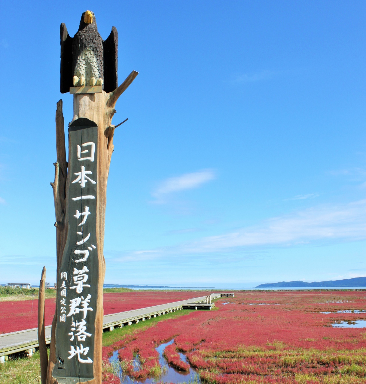 能取湖沿いの卯原内サンゴ草群生地を訪れました。