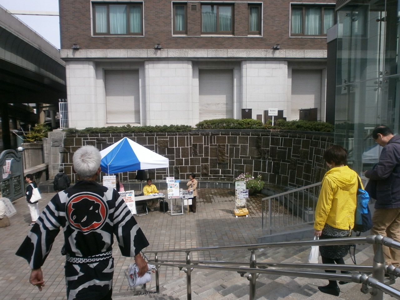 日本橋の高島屋側の袂の小さな広場が滝の広場です。橋の下が広場になっているので、広場からは橋の全景が見れる場所です。日本橋の下を流れる川の遊覧船の発着場になっているので、ここから東京湾に行くコースも出ているみたいです。