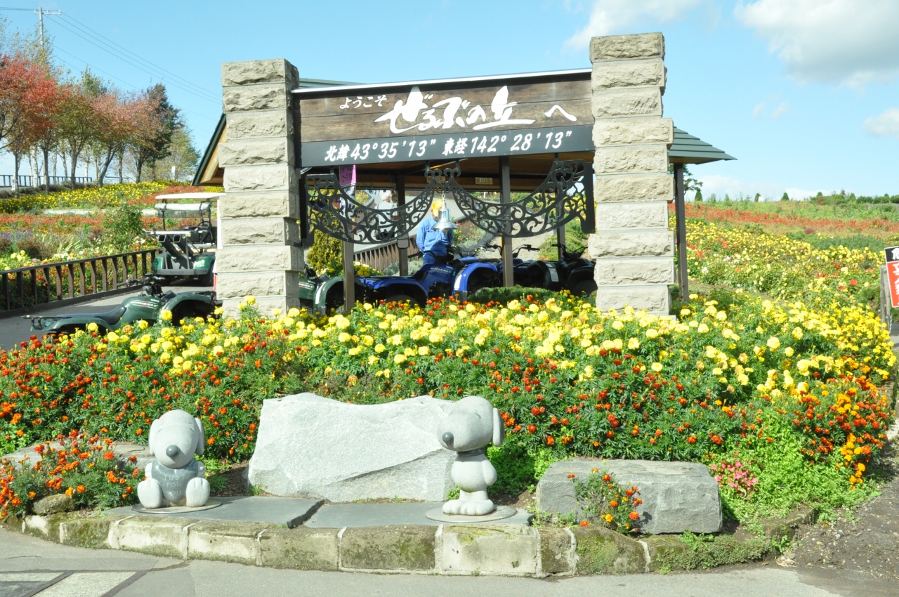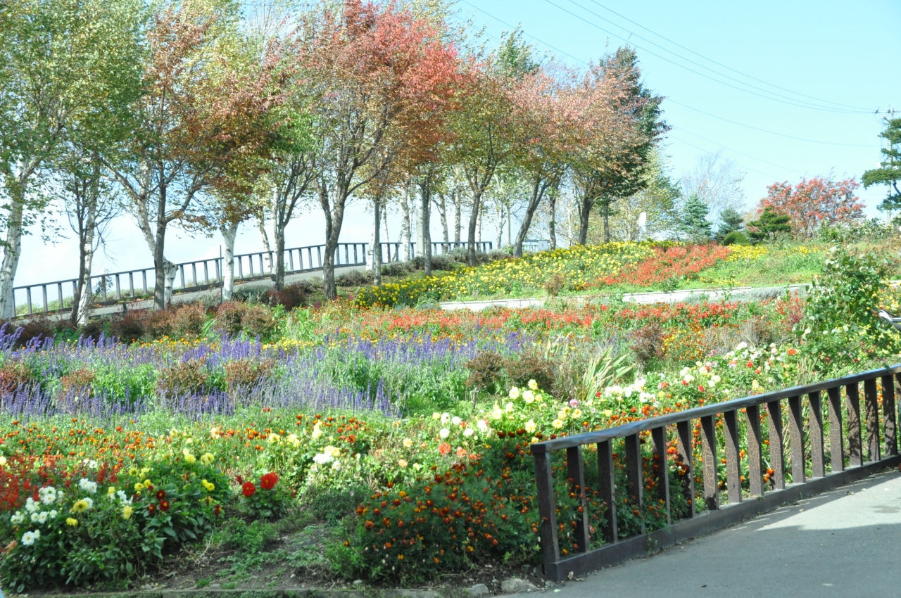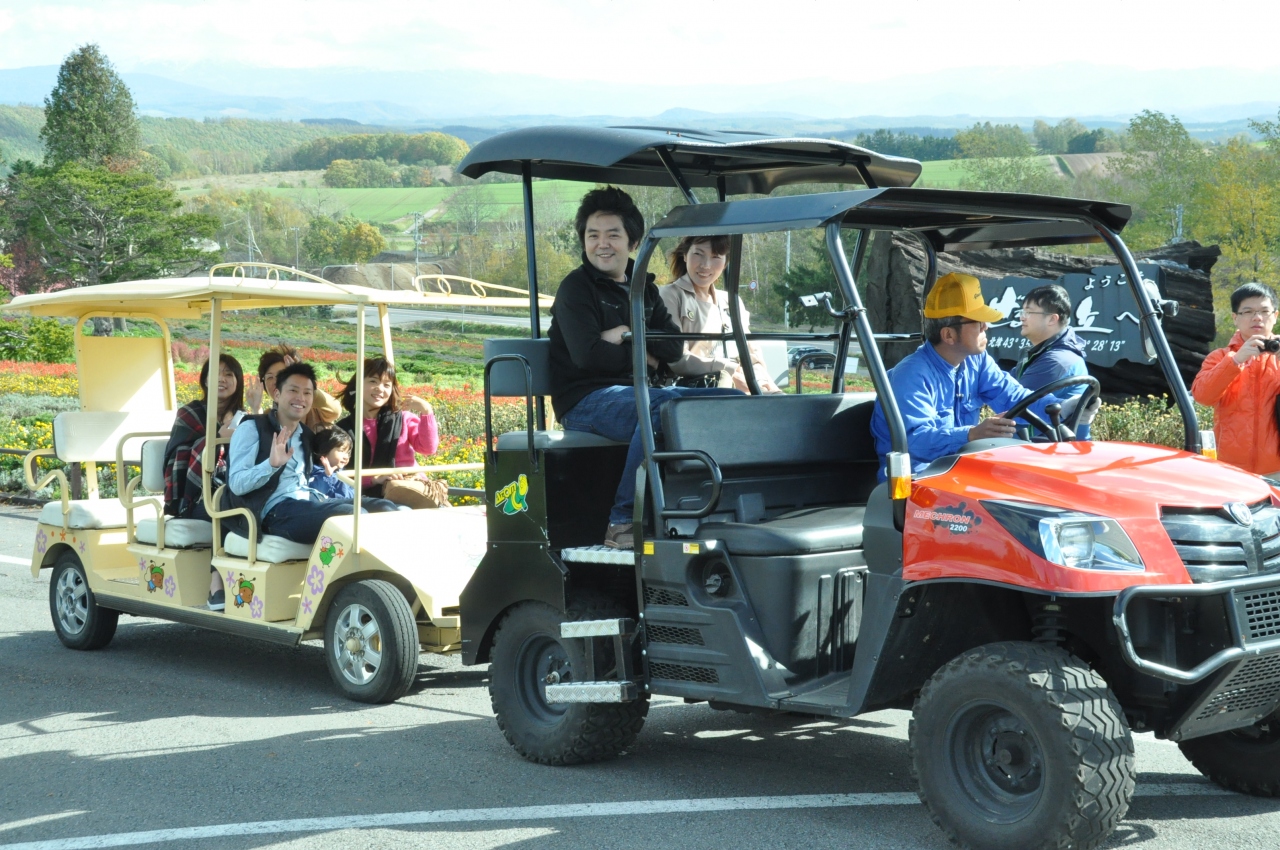 国道沿い、旭川方面からだと右手にある。今は季節的に花の時期は終わったが、駐車場に車を置いて登っていくと、丘一面に花の名残があり少し前まで辺りは美しい花畑だった様子を彷彿とさせる。花の季節ならどこをとっても本当に絵になる。ただしシーズン中は駐車場などは混雑するようだ。亜斗夢の丘レストハウスの展望台のようなところからは「ケンとメリーの木」を眺めることもできた。入場無料でこれらの景観を楽しめるのはとても良い。また、バギーやトラクターを改造したカートのような乗り物が人気で、1回500円で園内を1周しているようだった。