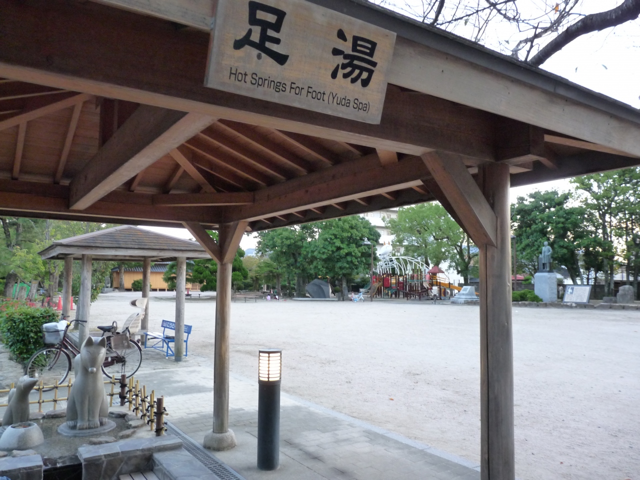 湯田温泉の中心地にあってメイン道路から少し入ったところに位置しているので,大変静かで安心できる公園です。園内には歴史を感じさせる数々の石碑があり,開設案内板もあります。白狐の遊具や足湯もあって楽しめる施設です。