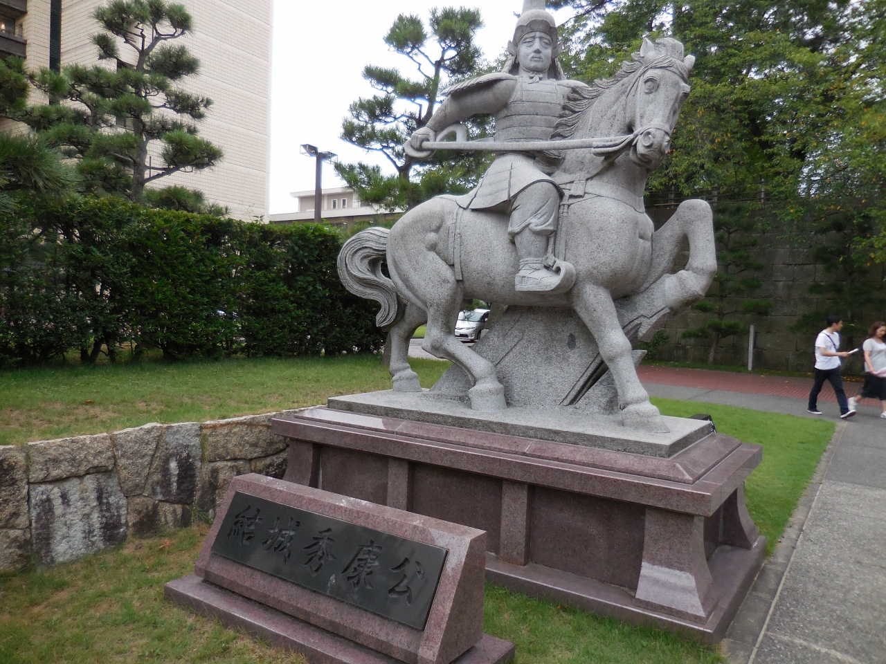 福井城址のすぐ北側にあるホテルに泊まったので、この像の前を何度も通りました。今の福井市の基礎を作った結城秀康は地元の人から尊敬されていることが良く感じられる勇猛な像でした。福井城址の中の県庁の前にあり、福井駅から近いので乗り継ぎ等で時間があったら是非見に行ってください。