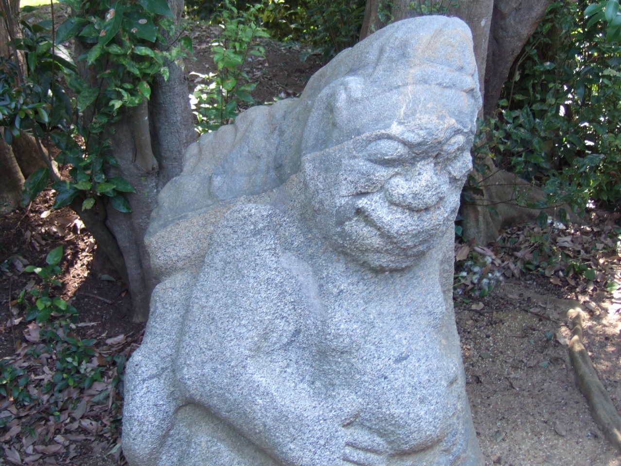 飛鳥には謎の石造物がいろいろとあります。確かに亀石は面白かったので猿石も見に行こうと思いました。車で行ったのですがわかりにくかったですね。駐車する場所もないので道端に車を止めてさっと見に行きました。不気味な笑いを浮かべている猿石は鉄柵内にあるので直接触ることはできませんでした。誰が、何のために作ったのかは謎だそうです。