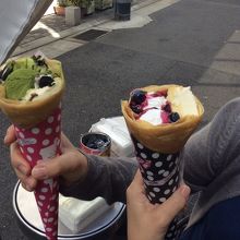 ひとつの味だと途中から飽きそうだと感じたので、抹茶アイスやオレオなど色んなものが入ったモノをWクリームで注文。