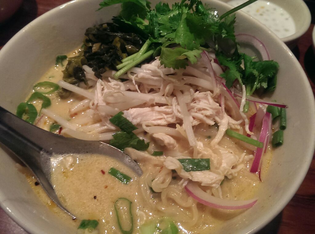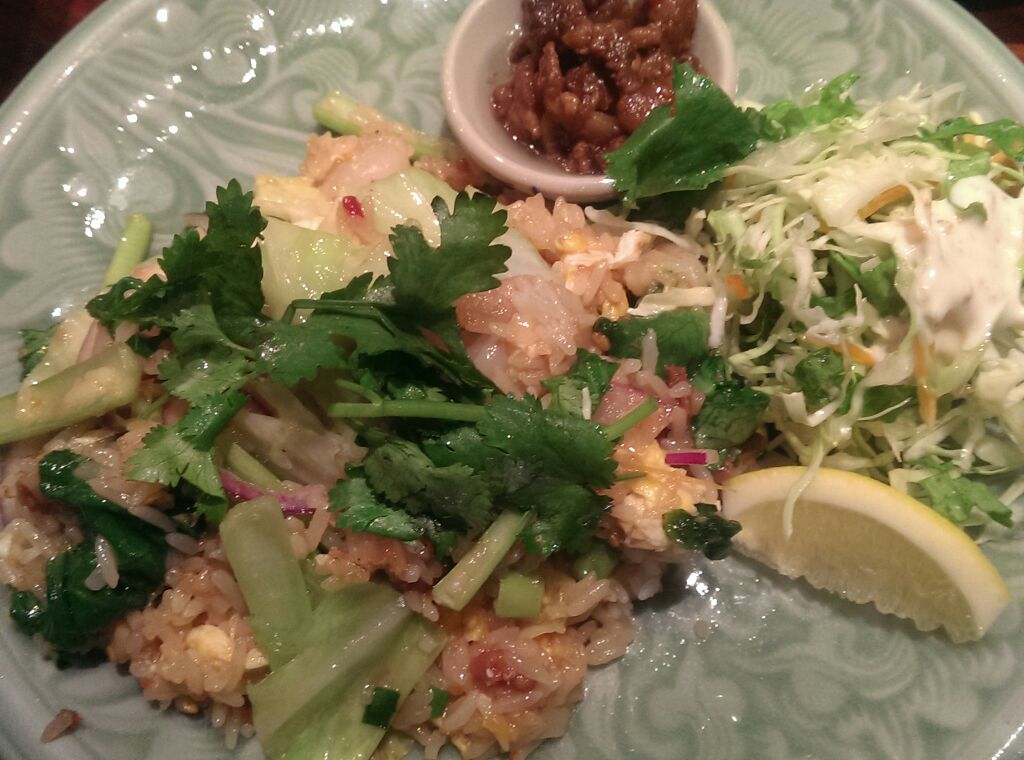 ランチメニューよりカオソイ(カレーラーメン)とカオパットナンプリックルア(エビ味噌チャーハン)を注文しました、どちらも初めて食べましたがめちゃくちゃうまい!