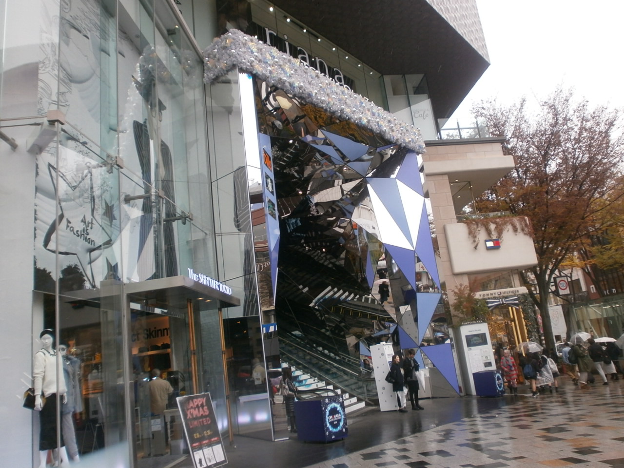 東急プラザ表参道原宿は表参道と明治通りの交差点の角地の一等地にある、いつも賑わっている複合商業施設です。最近新しく新築された綺麗な建物で、外壁がキラキラと輝いています。以前の店舗と異なってテナントも大分変わりました。