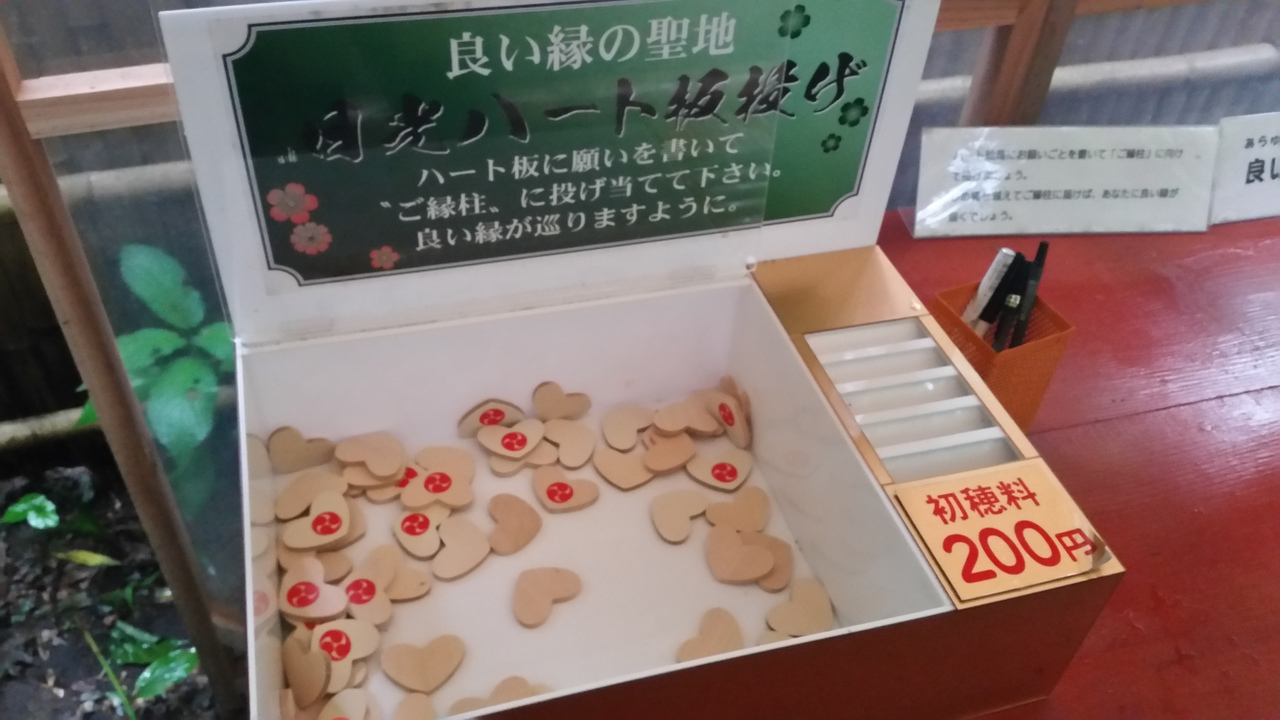 日光東照宮の脇にある二荒山神社は、縁結びで有名だそうです。境内に入ってからも、縁結びのお願いスポットが数ヶ所あり、笹の輪をくぐったり、輪投げをしたり、ハートの絵馬を投げたりとお願いの方法も様々で楽しめました。美人の水なるものもあり、女子旅で盛り上がること間違いない神社です。