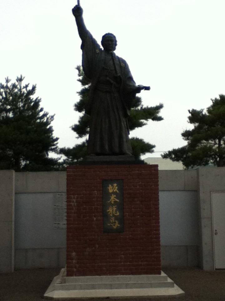 路面電車の十字街駅を降りると左手に坂本龍馬記念館、右手にこの像。