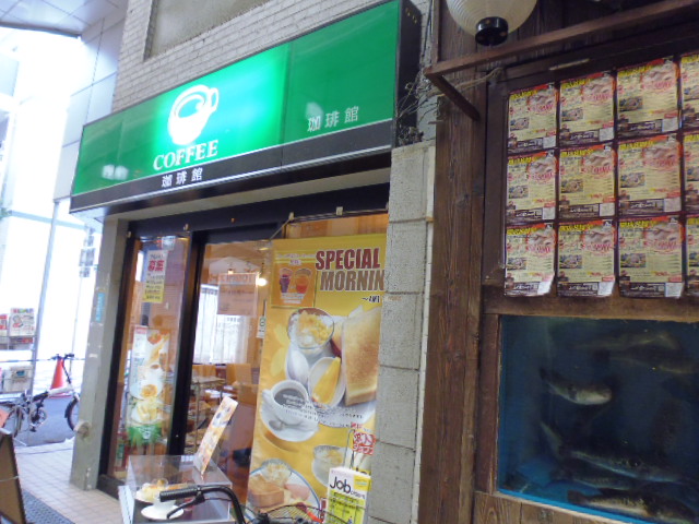 近頃の外国コーヒー喫茶店でない、昔ながらのコーヒー店がここです。京橋の商店街から京街道の碑がある中ほどにあり、屋根もあるので安心の商店街の中です。