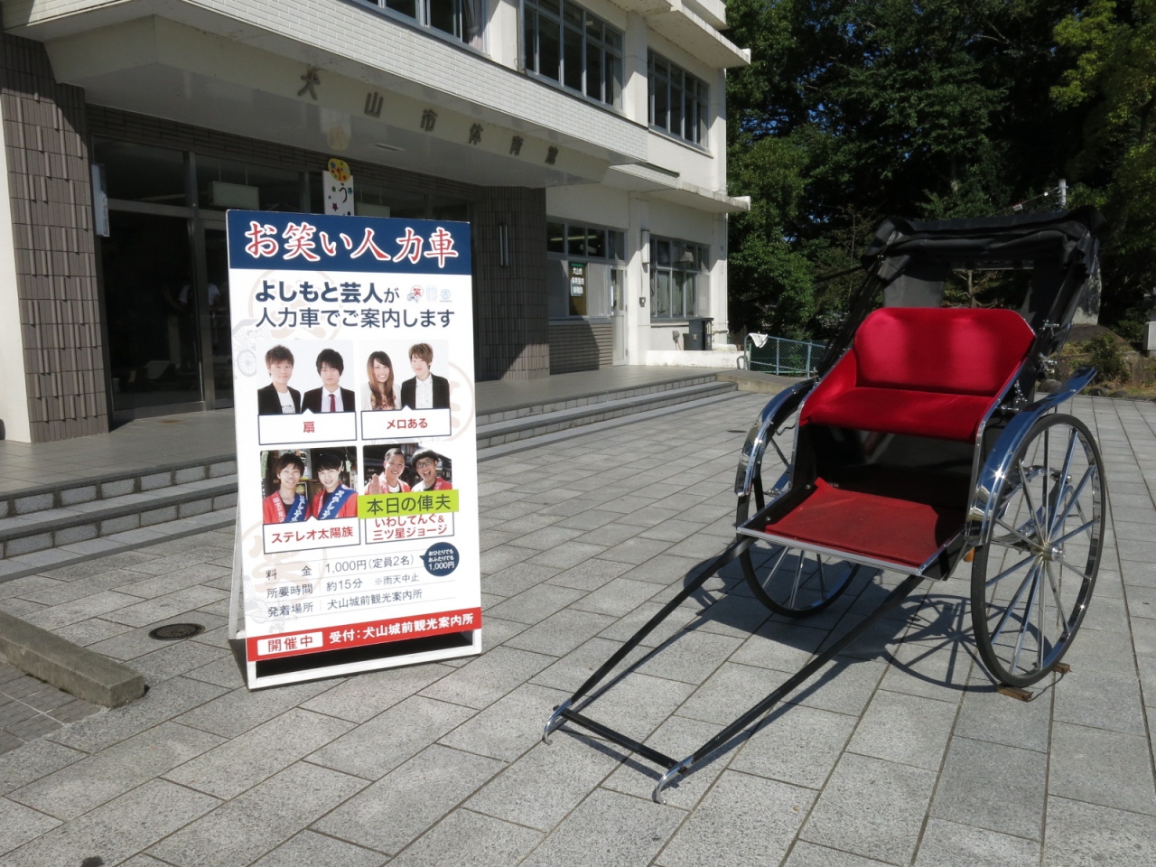 いろんな見所がありますね。町谷界隈は、車道になっていますが、車の通りは少なく、ゆっくり散策でしました。「山車蔵」「おみやげ屋」「喫茶処」など昔の雰囲気を醸し出している感じがいいです。犬山城近くの広場(神社がいろいろあります)には、「お笑い人力車」なんていうのもありました。吉本の若手芸人達が、人力車で犬山を案内してくれるそうです。将来大物になる芸人さんもいるかもしれませんので、時間あれば乗ってみてください。ちなみに1000円です。