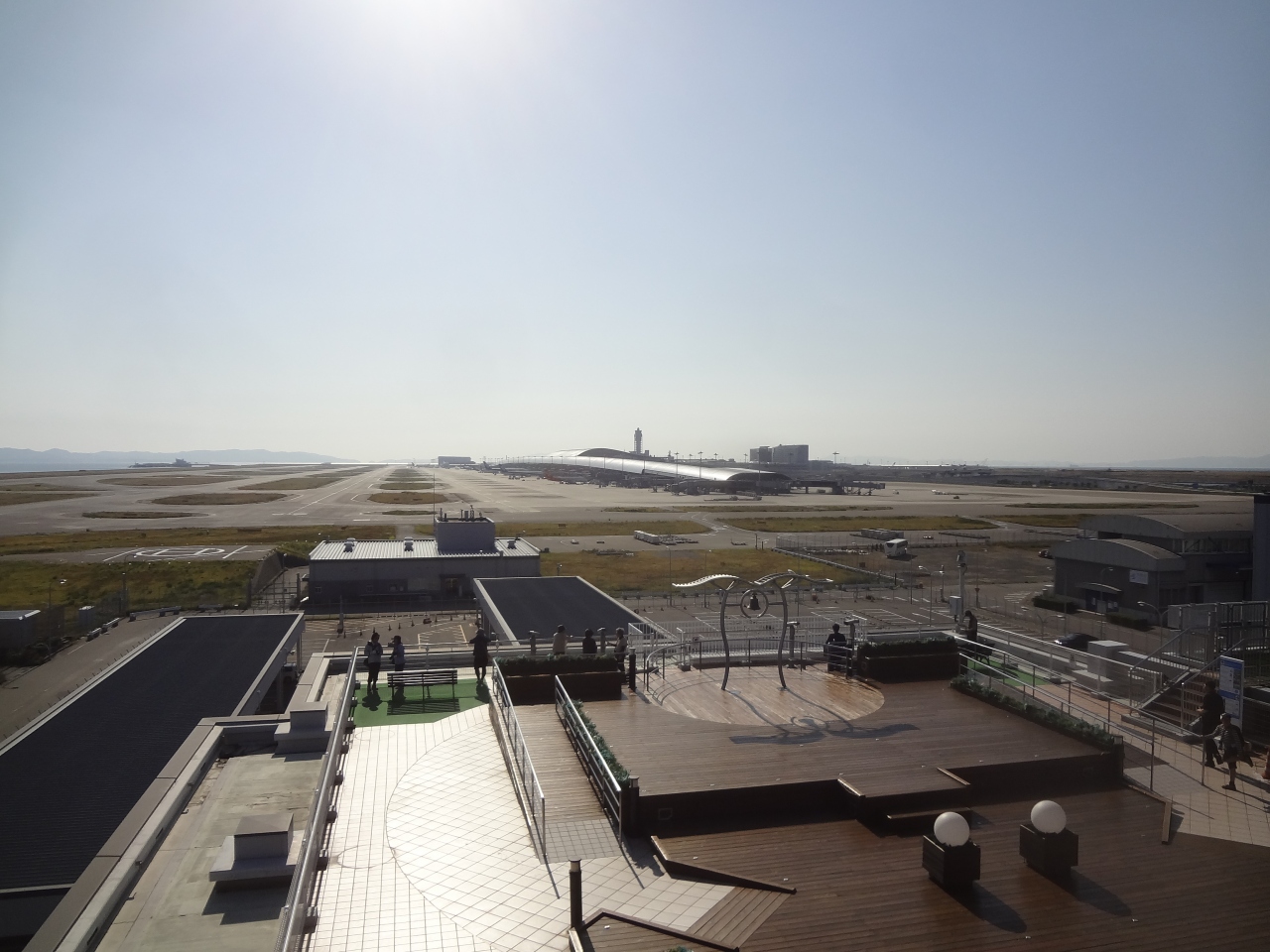 関空はターミナルに展望デッキがありません。飛行機を見たければこちらのスカイビューに行く必要があります。アクセスがちょっと面倒。ターミナルから送迎バスに乗って10分程掛かります。運行本数も少ないので時間の確認が必要です。行って帰ってきて最低でも1時間はあったほうがよいと思います。なので時間に余裕がないと行くのは難しいかもしれません。でも行ってみるとすごいです。こちらの展望デッキからは関空の滑走路とターミナルが一望出来ます。またタイミングが合えば、飛行機の離着陸を目の前で見ることが出来ます。飛行機目当てのアマチュアカメラマンも何人かいました。ちなみにデッキはビルになっていて、館内ではカフェも併設されているので、飲食も可能です。また送迎バスは無料です。