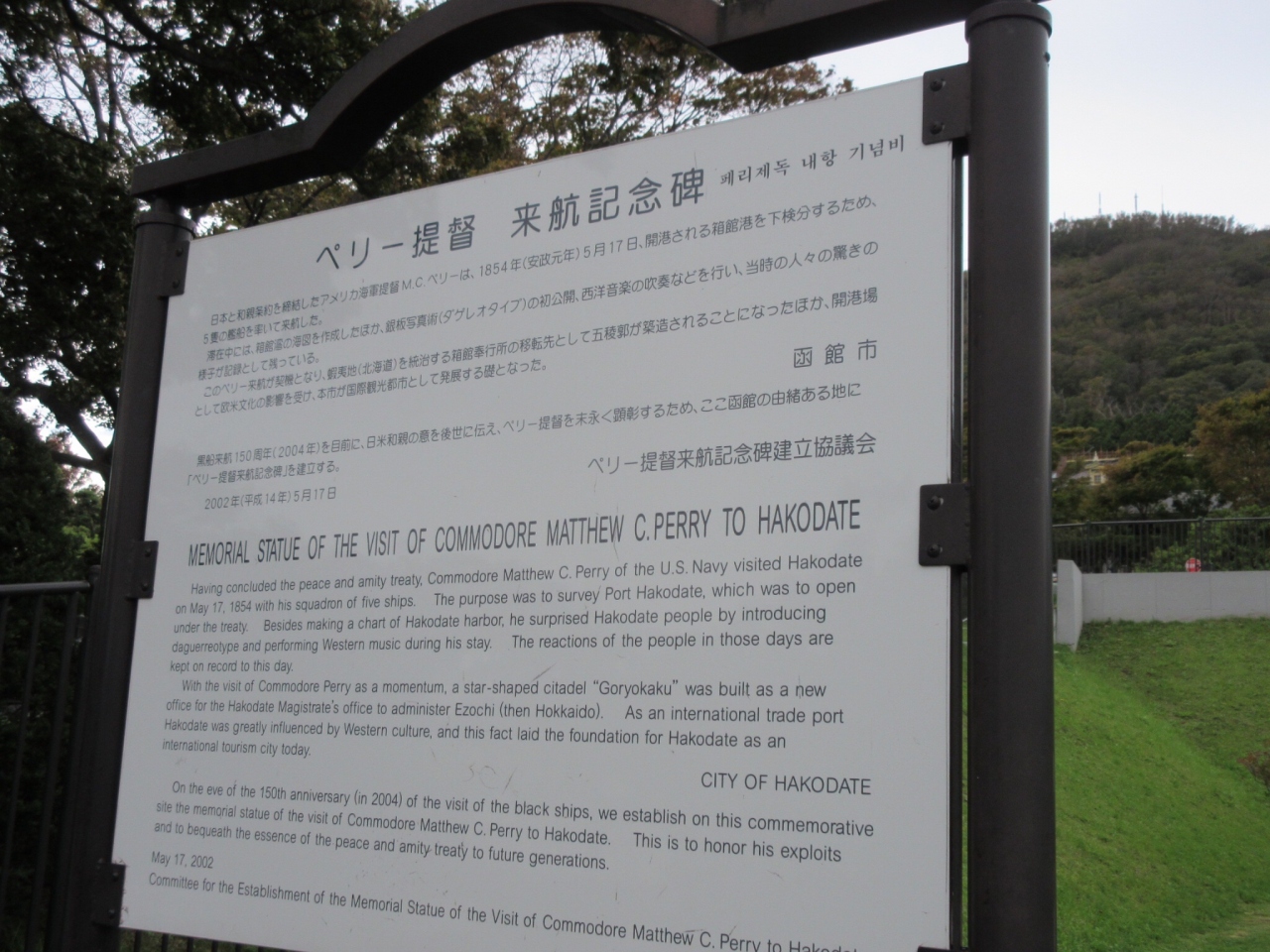 150周年の記念に建てられたようですが、そもそもペリーと函館の縁を知らないひとが多いのでは?