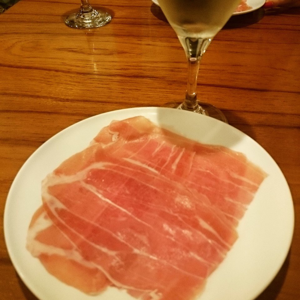 生ハム、安いけどおいしかったし、飽きてオリーブオイルとブラックペッパーをお願いしたらくれました。