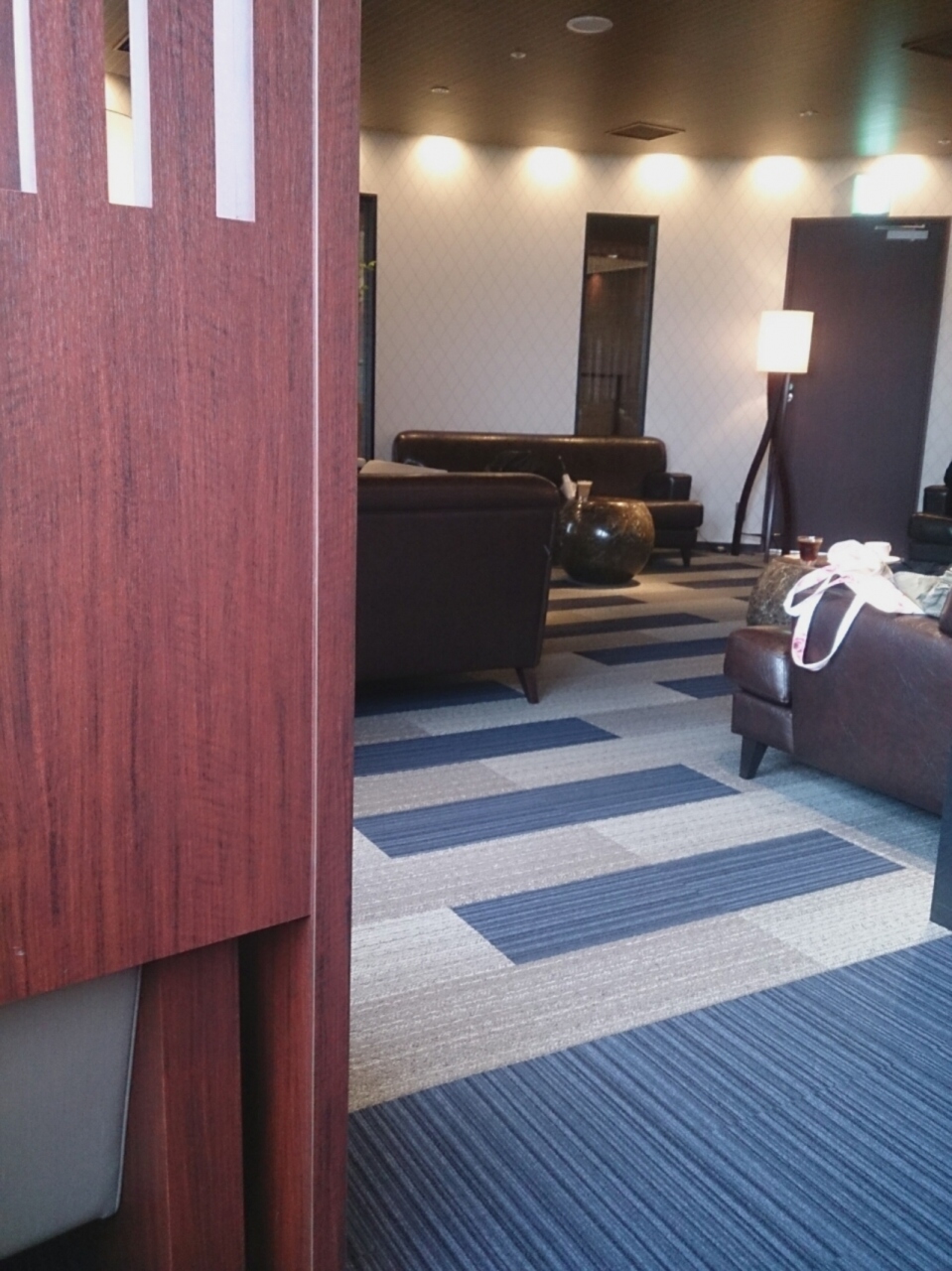 窓際の一人がけのソファーは半個室となっていて便利です。ただ残念なのは椅子に座ると窓の外の滑走路が壁で見えないことです。窓をもっと低くあればベストだったんですが…