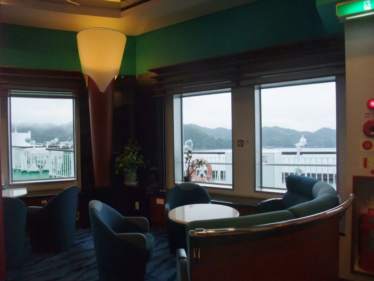 おれんじ九州とおれんじ四国の2隻が運航しており、私たちが乗ったのはおれんじ九州(2924総トン)の方です。八幡浜2時50分出航の夜に走る便なので、乗用車よりトラックの方が多く、従って船内はお客もまばらでしたが、静かで快適でした。