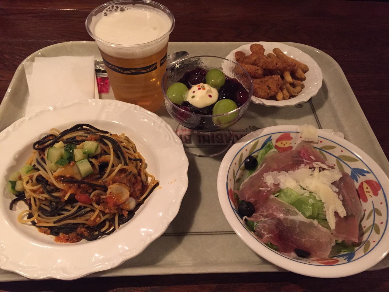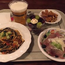 パスタとサラダ、フリット、ビールを注文。なかなか美味しかったです。