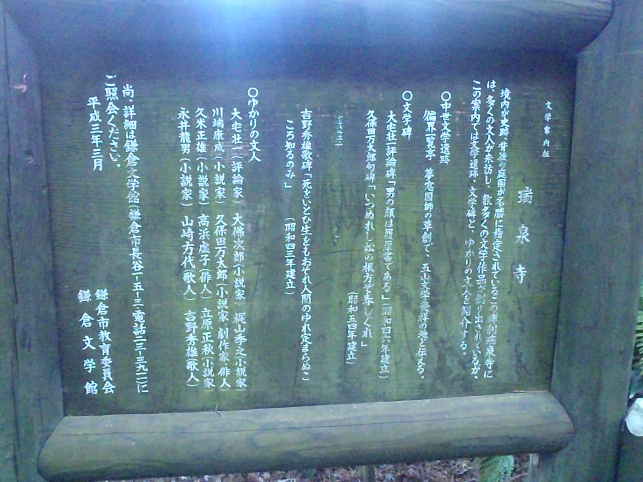 鎌倉駅から北東へ約3km山へ向かって行くので徒歩1時間弱、鎌倉三十三観音巡り第6番札所錦屏山瑞泉寺があります。
