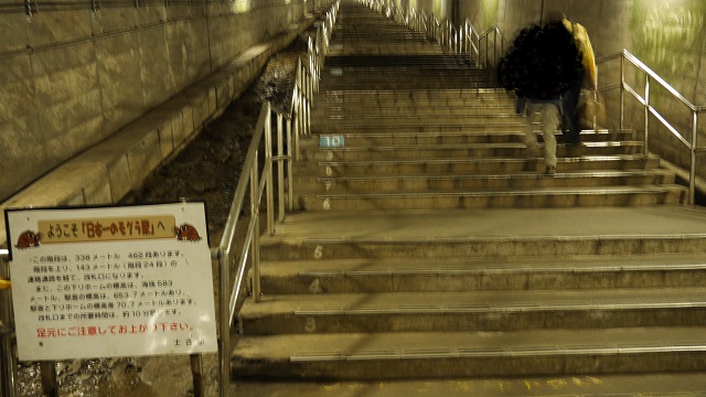 谷川岳登山のアクセスに利用した駅。長岡方面と水上方面でホームが離れており、長岡方面は地下ホーム。地上までは何と500段近い階段を上がっていかなければならない。日常利用する駅としては少しいやだが、自分を含めた下車客数名のほぼすべてが登山客で、これから上る山に比べれば大したことはないというかウォーミングアップに良い。ホームから改札口までは約10分。改札口から谷川岳のロープウェイ乗り場までは徒歩約20分。水上駅前からロープウェイ行きのバスの走行経路だが土合駅での接続は考慮されていない模様。県境区間で需要に見合った運行本数のようで、定期列車は1日片側5本。ご利用は計画的に。
