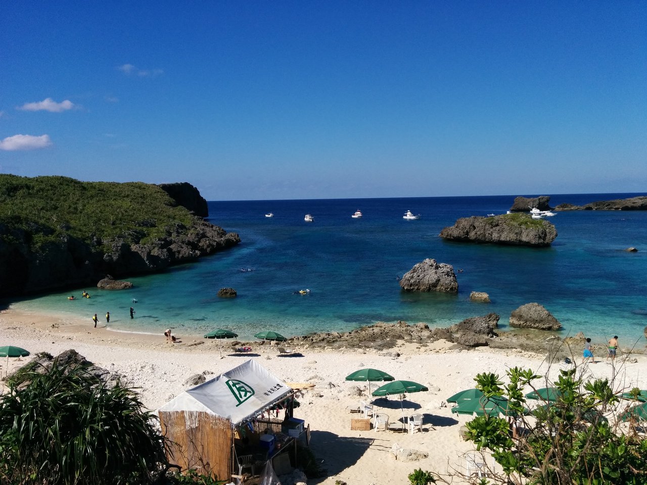 初めて見る「中の島海岸」は絶景で、たくさんの人々とシュノーケルや海水浴を楽しんでいました。