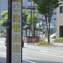 浜松市の観光プロジェクトの一環と言う事でしょうか、JR浜松駅から浜松城までの約2.4kmを出世街道として命名しているそうです。特に大きな装飾は無いのですが街燈に貼られたステッカーに沿って歩くと浜松城に着きます。