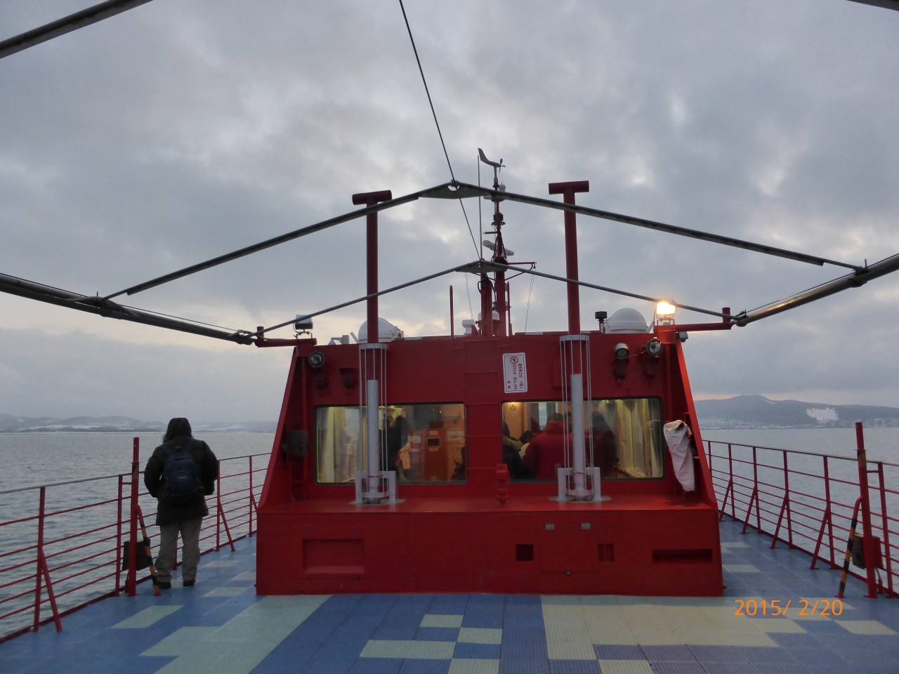 結論から言うと、紋別発のガリンコの場合、流氷までの距離が遠く氷もかなり薄かった。その分、人も少ないけどね。紋別港には氷がなかったけど、網走からは岸壁から流氷が目視で確認できます。