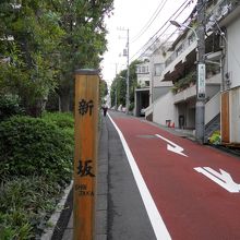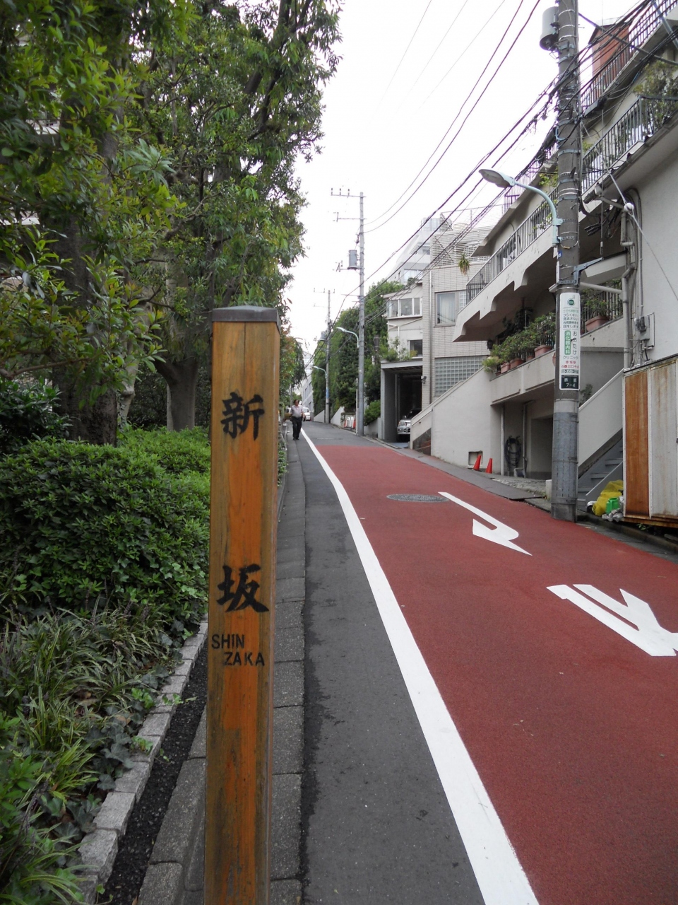 乃木神社からスタートして、カナダ大使館へ向かう途中で、標識のある坂を発見!赤坂七丁目と八丁目の間を南から北へゆるやかに上る坂です。すぐ近くにカンボジア大使館もありました。