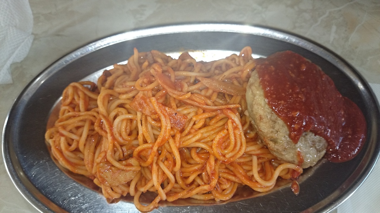 メニューではポンヌフバーグが有名で、セットにすればドリンクとこれまた有名なプリンが付いてきます。最近はこれだと少々重いので、ハンバーグスパゲティーの単品にすることが増えました。パスタは甘めで濃いめのケチャップ、ハンバーグは粗めのタマネギでずっしりとしたもの。これに粉チーズとタバスコをふりふりしながら食べるともう至福です。
