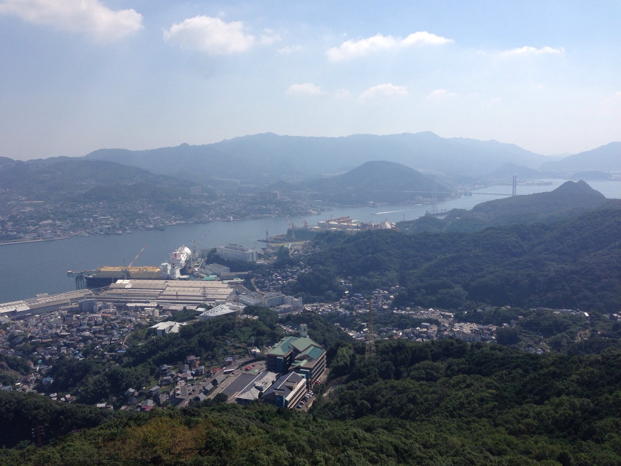 お昼の後に稲佐山山頂の展望台に向かいました。夜景が綺麗なのでしょうが、小さな子供がいるので昼間に行きました。夜景を見るのは次回にします。山頂まではレンタカーで行けます。有料の駐車場(あまり台数は止められない)があります。展望台にはエレベーターがあり、子供も年配の方もらくに上がることができます。トイレも綺麗です。行った日は天気も良く、長崎市内が良く見渡せました。評判と通りです。昼間もなかなかです。おすすめです。