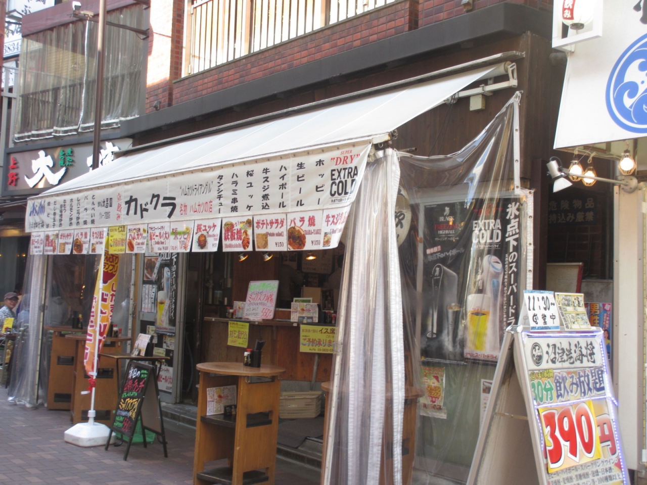 上野のマルイの裏手で、アメ横にも近い立ち呑み店が多くある場所にある1軒です。どうしても近くにある「たきおか」と比べてしまいます。こちらのお店のほうがたきおかよりも若者向けのように私は感じます。私は「たきおか」の雰囲気のほうが好きなのですが、価格はリーズナブルなので手軽に飲みたい際や、はしご酒をしたい際におすすめです。