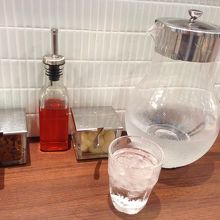 チキンカレーをいただきましたが、平皿でなく食べやすい赤いボールのような皿で提供されました。ご飯にはフライドオニオンがトッピンぐれていてお洒落。カレーはこだわりのある味。テーブル上のチリオイルを入れると味が締まります。また福神漬けとらっきょうは好きなだけ。お冷やが入った瓶もお洒落。