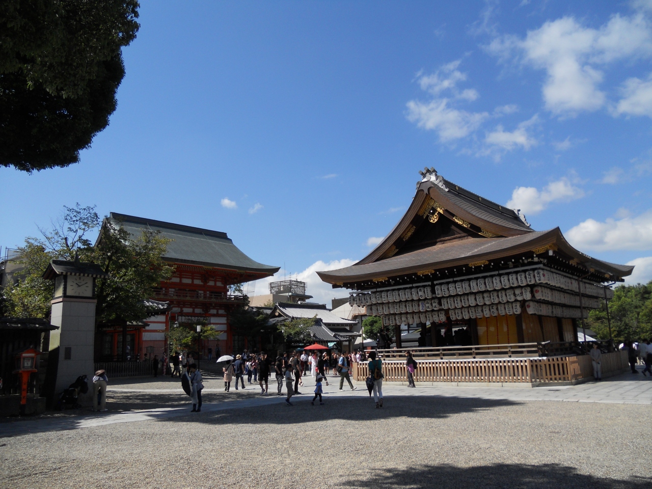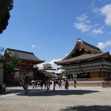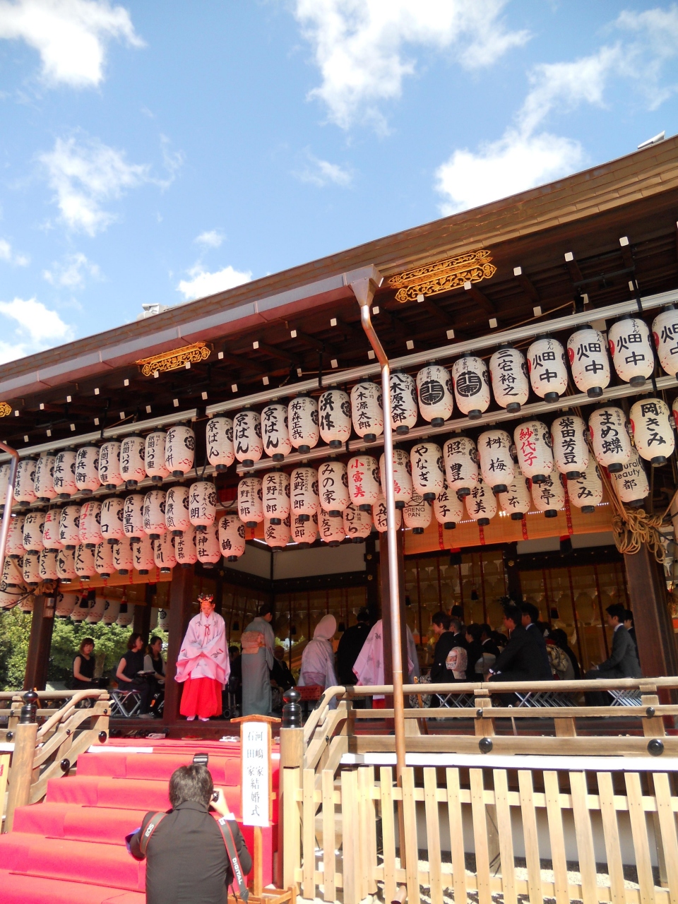 シルバーウィーク中の訪問でしたが、偶然本格的な結婚式が行われおり、少し見学させていただきました。祇園造りの本殿は国の重要文化財に指定されています。