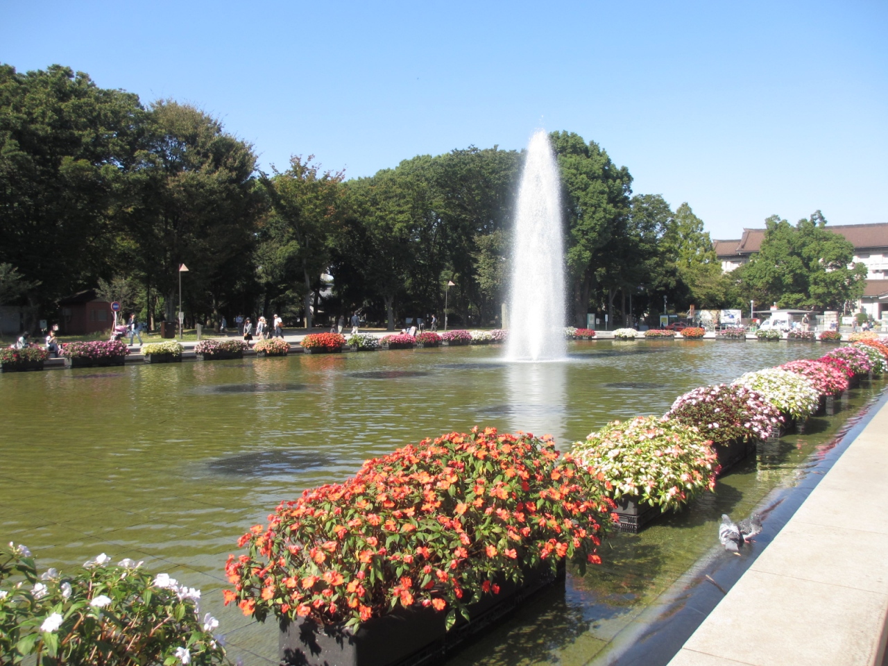 上野恩賜公園の中にある噴水です。公園内には蛙の噴水という噴水もありますが、それと比較するとかなり本格的な噴水です。噴水の周りには花が綺麗に植えられていて、上野恩賜公園の中でも憩いの場になっていると思いました。