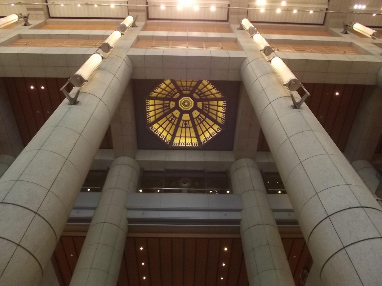 1階のアトリウムから見上げるステンドグラスがとても素晴らしいです