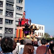 しばらくは市役所前の広場で山車が集まってくるのをまっていました。