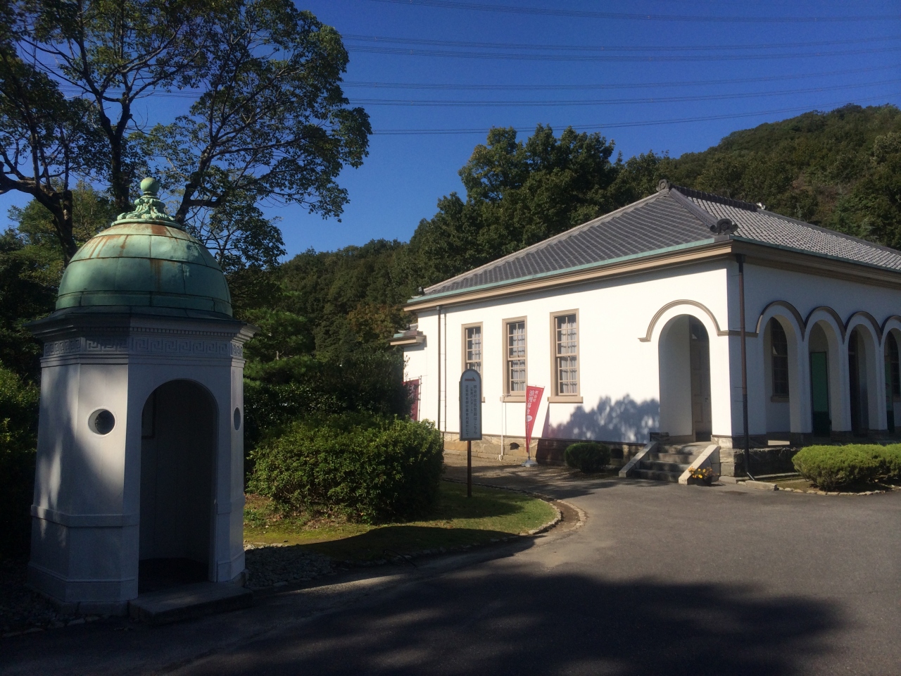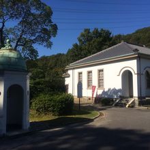 明治村の正門を入って右手に進むと突き当りにある白い建物です。明治20年に皇居の護衛のために建てられ、後に皇宮警察本部として昭和42年まで坂下門で活躍していたようです。建物内部は明治の偉人の紹介と明治村の年間パスポート(住民登録)を発行してくれます。
