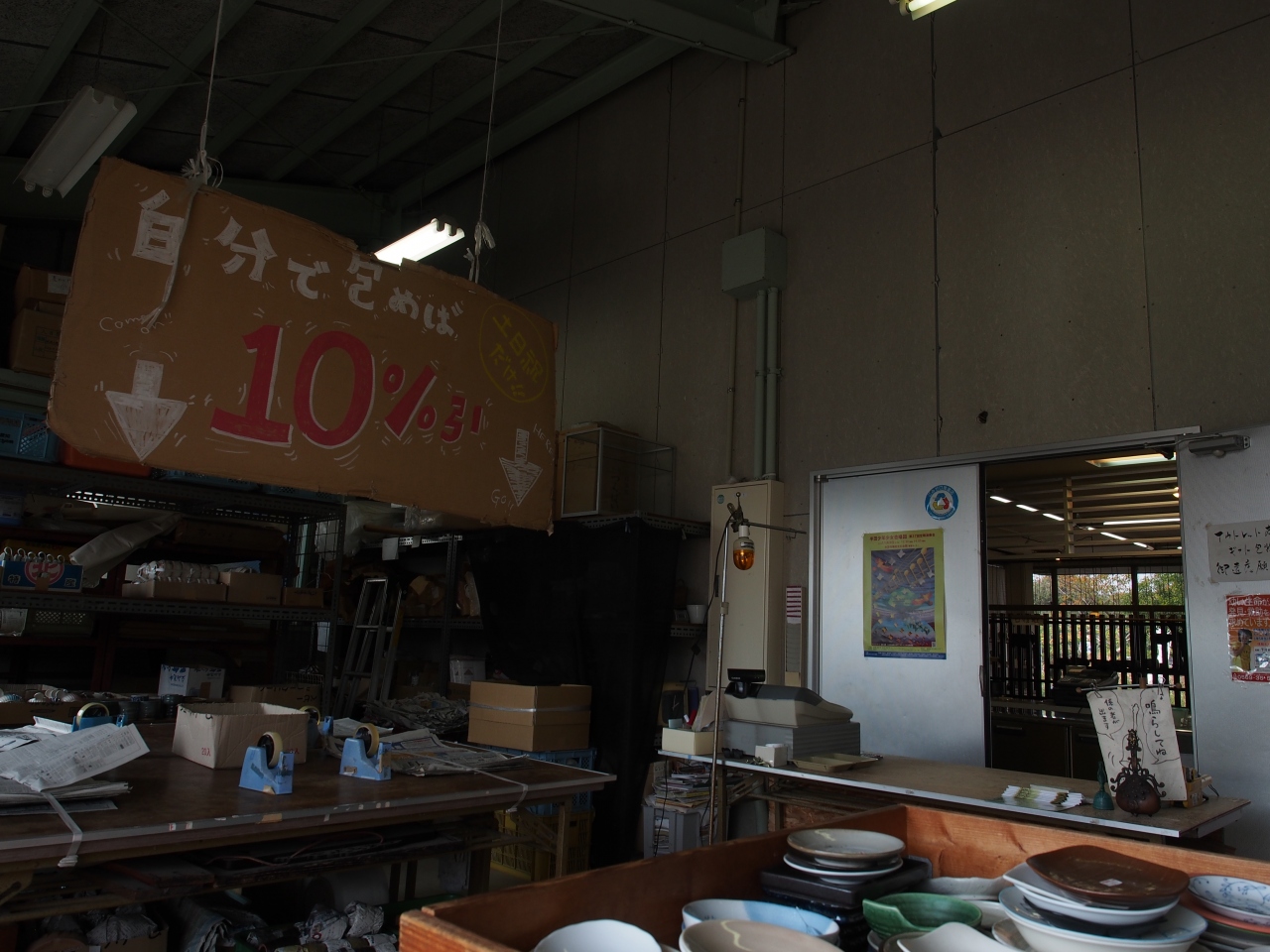 やきもの卸団地という名前のとおり、やきものを扱っているお店が倉庫のようにたくさん並んでいる場所です。